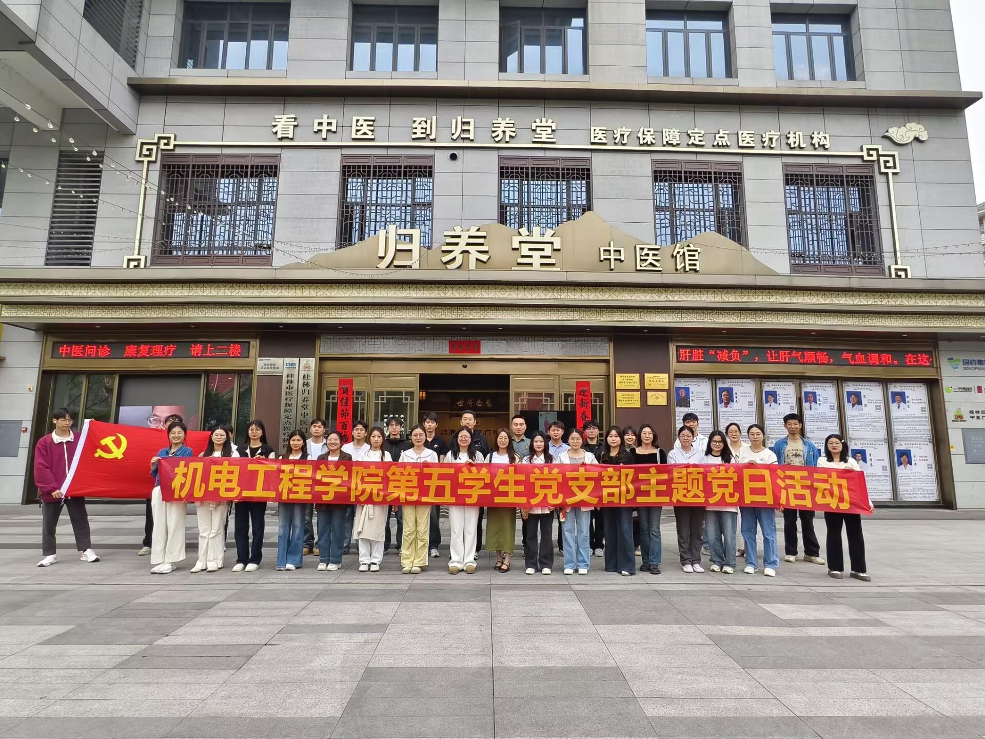 为深化党员对中华优秀传统文化的认知与使命担当,4月25日,机电工程学院第五学生党支部开展"岐黄薪火传,红心映杏林"主题党日活动。通过"沉浸式观产业+体验式学非遗"双线模式,组织学生党员走进广西一方天江制药现代化产业园与归养堂国医馆,在中医药产业链的深度参访与非遗技艺的亲身实践中,探寻守正创新之道,厚植文化传承之责。