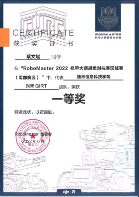 学生各类大赛和双创成果:近年来,本专业学生在全国大学生机械创新设计大赛、广西高校大学生工程能力竞赛等比赛中获得各级各类奖项80余项。近三年,本专业毕业生就业率保持在97%以上。获全国机甲大赛获得全国赛一等奖1项、二等奖3项、三等奖5项,在中国互联网+大学生创新创业大赛、全国大学生电子设计竞赛、挑战杯,广西大学生创业计划竞赛等赛事中屡获奖项。