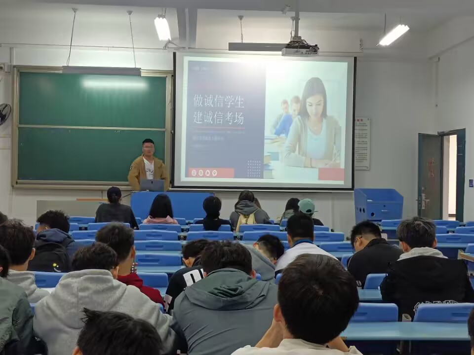由于疫情的原因,下周提前进入了考试周,已经结课的课程陆陆续续开展了考试。“诚信考试”是作为一名大学生必须严格遵守的准则。班会上,班主任向大家详细阐述了学校有关考试作弊的规章制度与惩罚机制,严格强调了考试过程中诚实守信的重要性,并向大家说明了考试只是检测所学知识的手段,是平时努力程度的集中反映,提醒大家在接下来的学习过程中进一步完善自我。一定要严格遵守学校的校纪校规,合理安排自己的复习时间,沉着冷静、文明诚信的应对接下来的每一场考试。