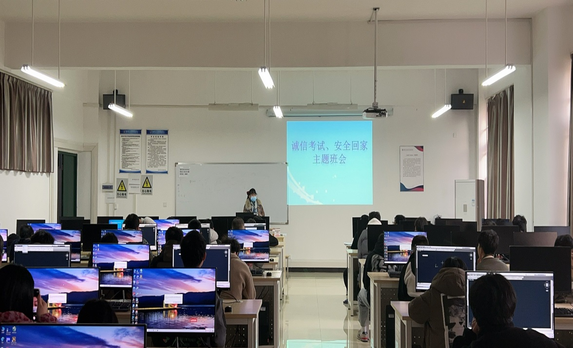 12月12月,2022级电气工程及其自动化1、2班班主任廖志平及全班同学在52405召开了“诚信考试、安全回家”主题班会。