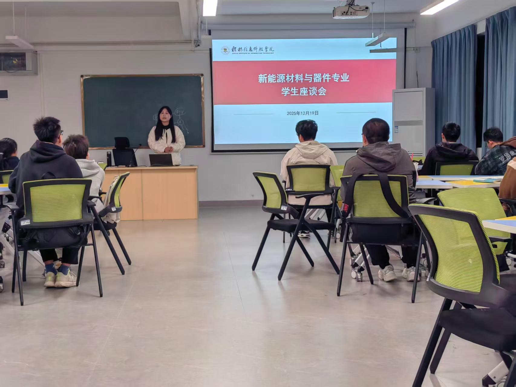 为深入了解新生入学适应情况,精准对接专业学习需求,12月19日,成功召开新能源材料与器件专业2025级学生座谈会。新能源材料与器件教研室主任马伟民教授、副主任邓玉萍副教授、学业导师韦秋红老师及2025级学生代表共计40余人参加座谈,会议由韦秋红老师主持。