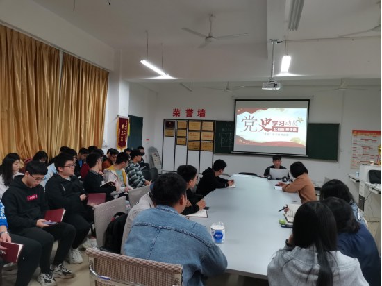 会议由支部书记梁梦良主持。梁老师向支部党员传达“党史”学习要求及学习安排,并推荐《中国共产党简史》、《论中国共产党历史》等学习书籍及影片供大家自学并记录学习心得,引导学生党员通过集中学习、自学、观影等方式深入学习“党史”,加强“党史”教育,深刻感悟中国共产党始终不渝为人民的初心和使命。