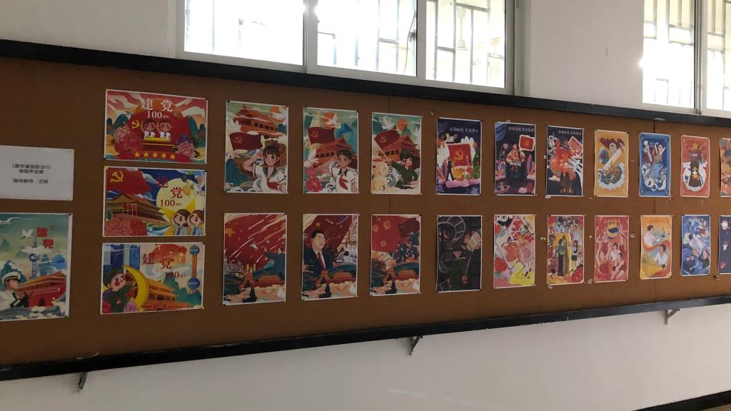 为庆祝中国共产党成立100周年,弘扬中华民族优秀传统文化,4月29日,设计系于四教一区举办了“建党100周年”主题优秀作品展,本次展览由兰珂老师指导,数字媒体艺术专业学生创作,是课程思政融入设计教学的阶段性成果。