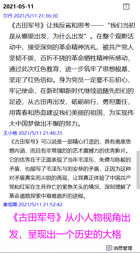 5月12日,管理系教工党支部在线上开展向电影学党史《古田军号》微观影活动,全体教工党员参加本次学习。