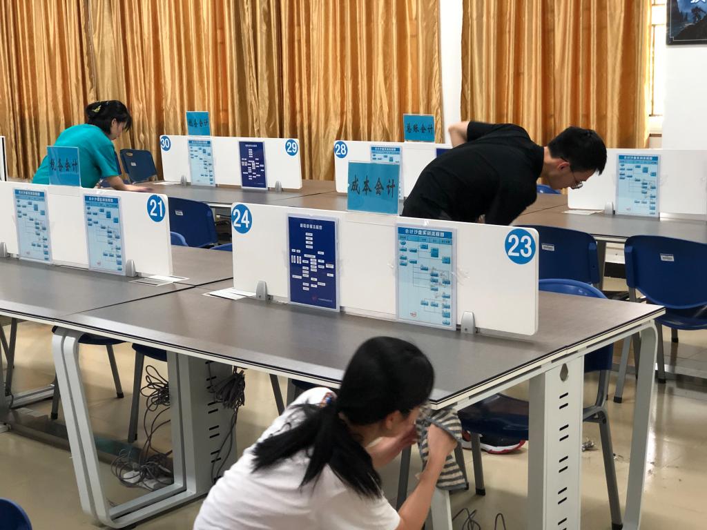在带队老师的指引下,将管理系实验室分为三大区域,每块区域设有负责人,同学们每三人一组,负责人带小组成员们各自完成负责区域的打扫工作。同学们积极热情,尽心尽力,相互配合,顺利地完成任务。