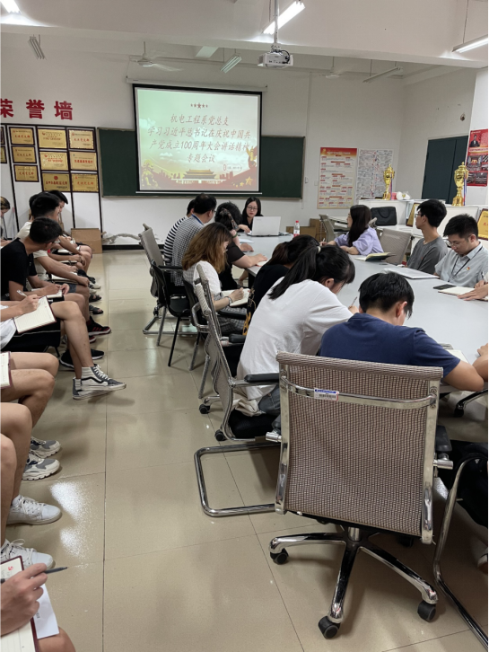 7月1日下午,机电工程系党总支召开学习习近平总书记在庆祝中国共产党100周年大会上的重要讲话精神专题会议,机电工程系党总支书记黄娟、全体学工辅导员、学生党支部全体学生党员参加了会议。
