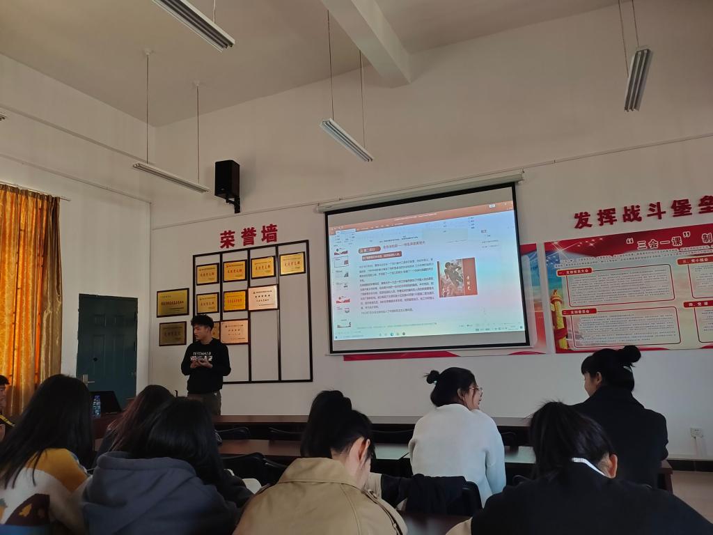 11月30日,由商学院党总支主办,商学院第三学生党支部承办的“红色故事大家讲,英雄精神代代传”每周“一个红色故事”系列活动在11501党员活动室开展,全体师生党员参加。