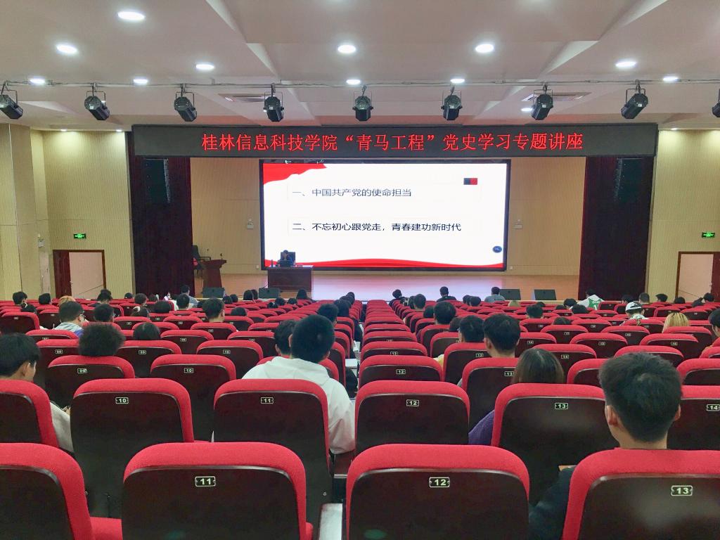 为认真落实《广西共青团“学党史、强信念、跟党走”学习教育实施方案》,教育引导广大团员青年了解党的光辉历史、传承党的红色基因,11月4日,pp电子2021年“青马工程”党史学习专题讲座在51206报告厅顺利举办。校级“青马工程”培训班全体学员、二级学院学生骨干等近130人参加学习。