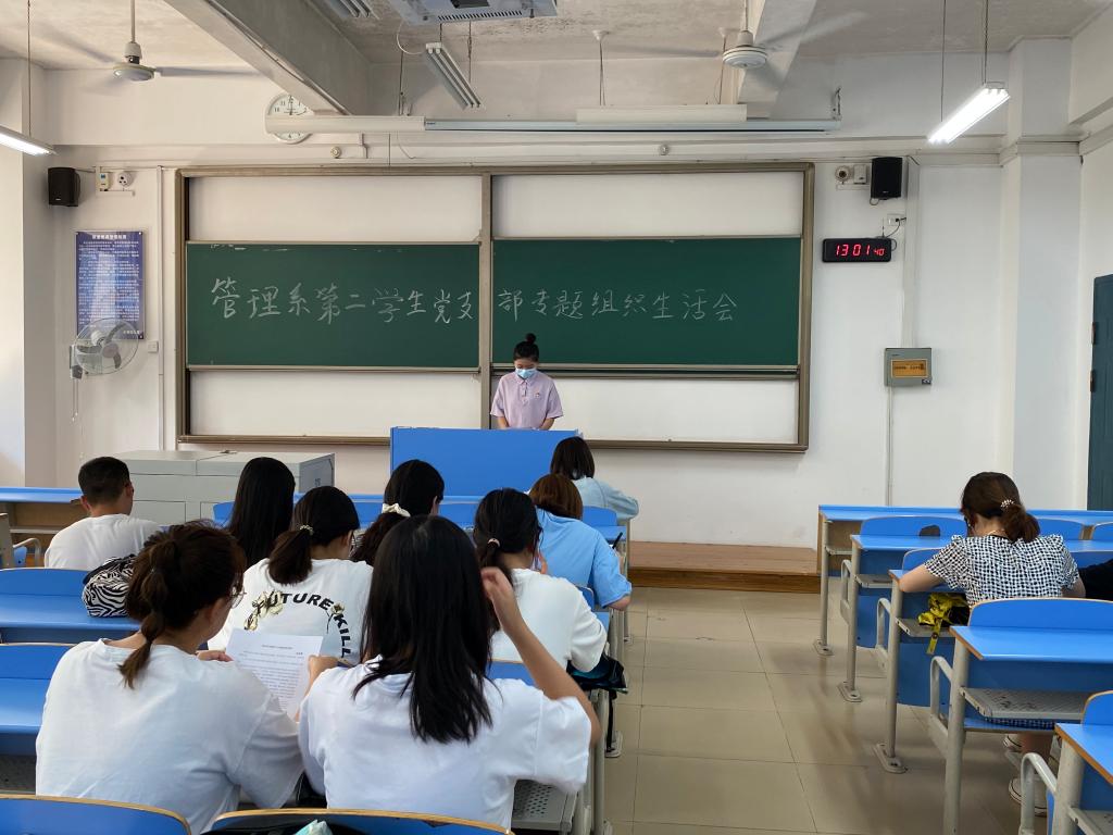 为更好的学习贯彻习近平总书记“七一”重要讲话精神,引导我院全体师生党员不断增强“四个意识”、坚定“四个自信”、做到“两个维护”,勇于担当作为,9月2-6日,管理系党总支各支部分别组织召开党史学习教育专题组织生活会。