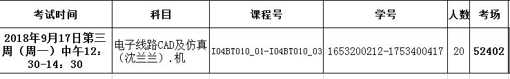 更改后的17-18(二)《JAVA高级程序设计(机试)》、《电子线路CAD及仿真(机试)》补考安排如下: