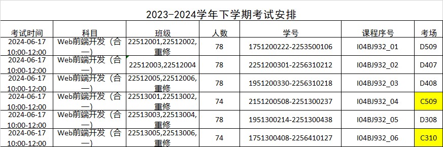 《Web前端开发(合一)》考试时间因课程冲突推迟。具体安排如下: