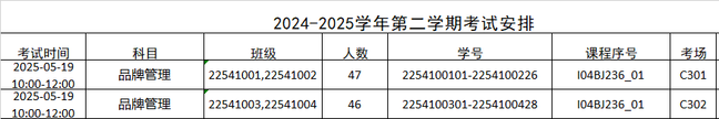 《品牌管理》考试时间因课程冲突推迟。具体安排调整如下: