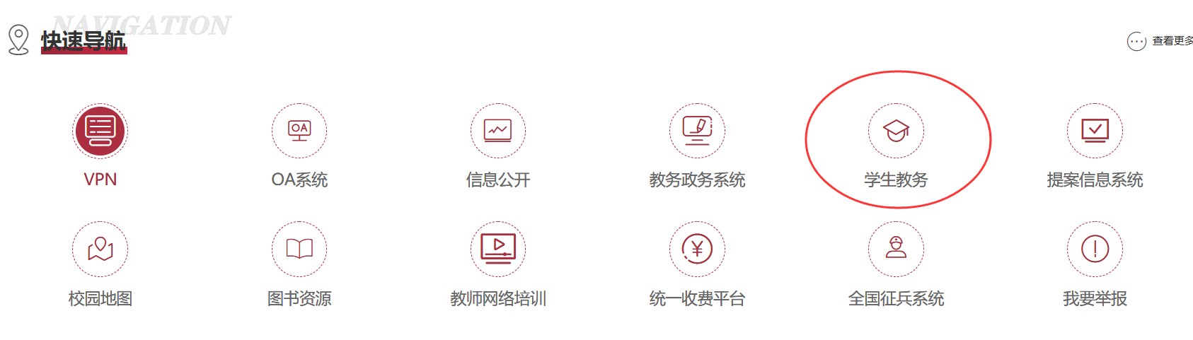 2、登录学校官网主页,在快速导航中,点击学生教务