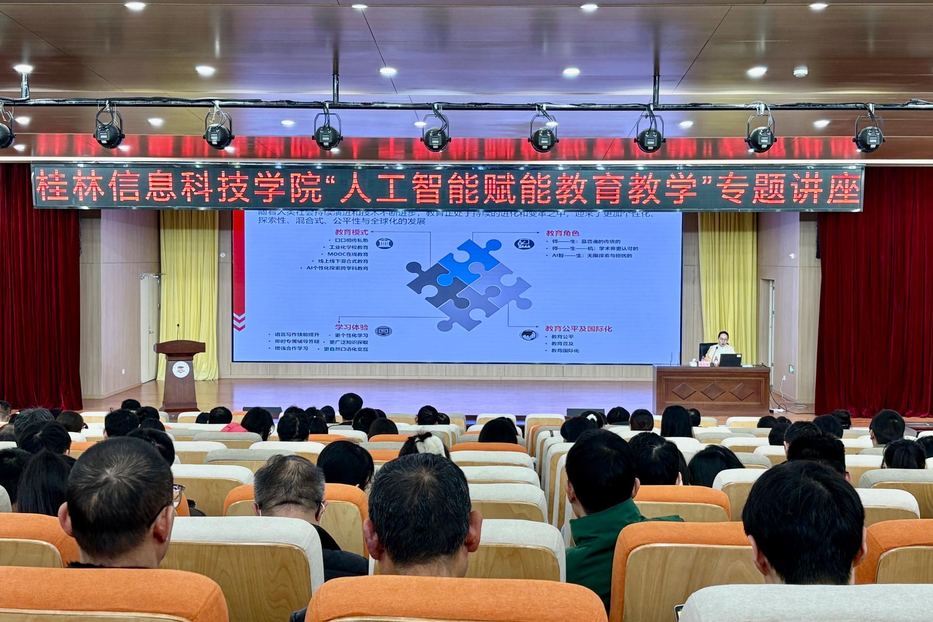 为深入贯彻国家教育数字化战略部署,助力教师提升人工智能融合教学能力。1月14日下午,由教务处联合质量评估中心组织的“人工智能赋能教育教学”专题讲座顺利举行。本次讲座特邀桂林理工大学及方华、邓敏慧两位副教授担任主讲,各教学单位负责人、骨干教师等共同参与。