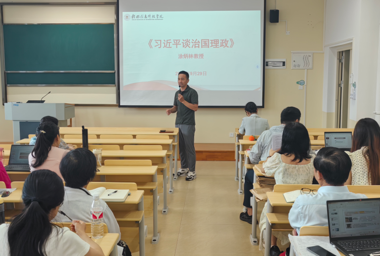 会上,涂炳林教授对《习近平谈治国理政》第四卷中的三个章节——掌握历史主动、在新时代更好地坚持和发展中国特色社会主义、坚持党的全面领导、推进社会主义文化强国等议题,进行了深刻而全面的学习心得分享。他从理论与实践相结合的角度,深入剖析了这些重要议题,并结合具体案例,为各位教师深入学习贯彻习近平新时代中国特色社会主义思想提供了宝贵的思想资源和行动指南。