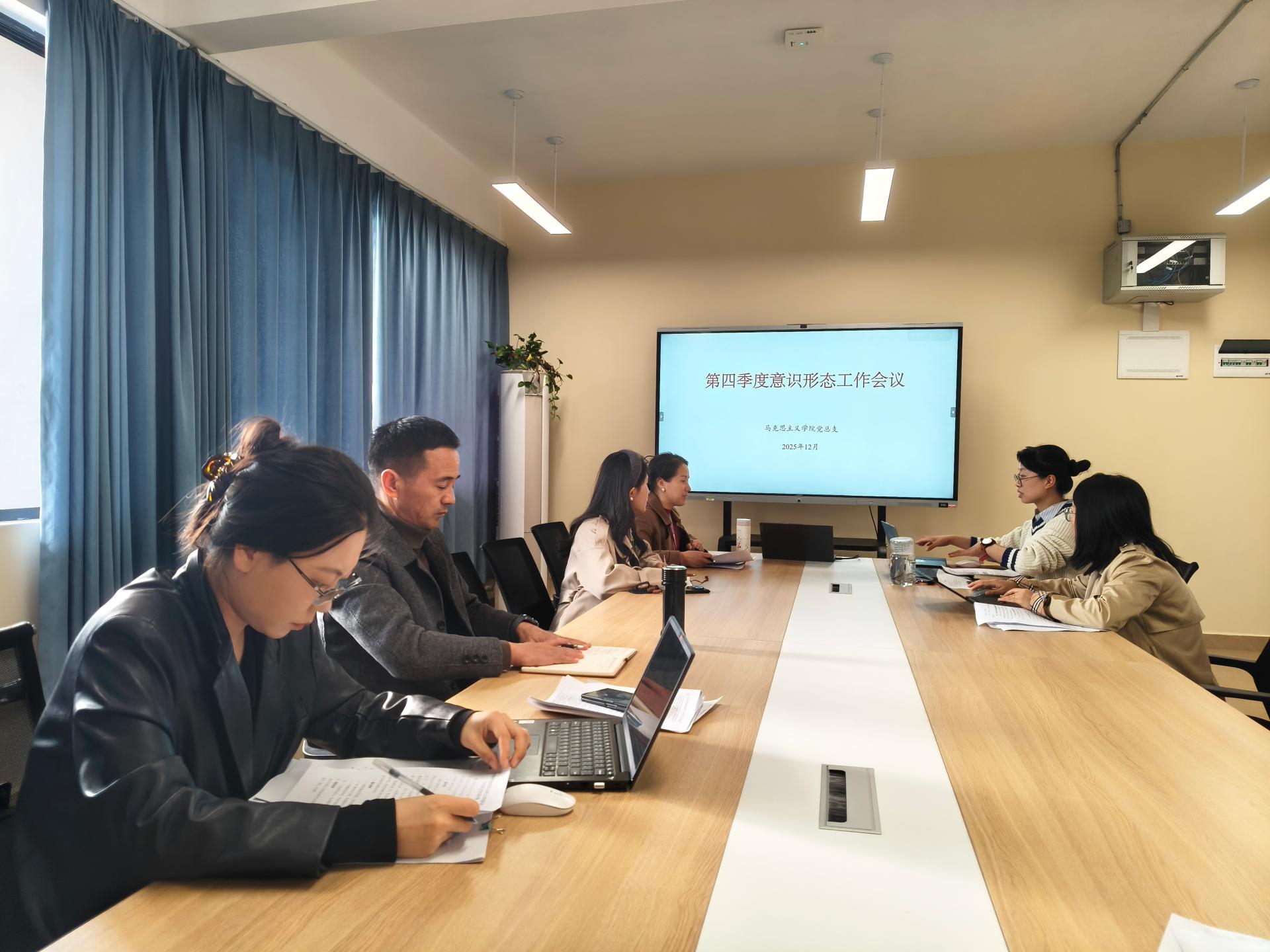 12月10日下午,马克思主义学院党总支在G611会议室召开2025年第四季度意识形态工作会议。会议由党总支书记赵奕主持,党总支理论学习中心组成员、各党支部书记及组织员参加会议。