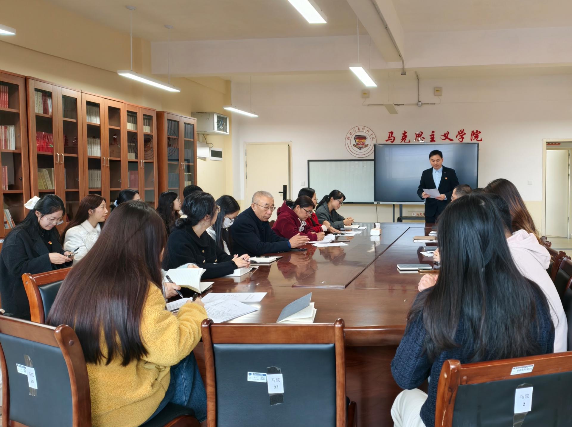 12月19日,马克思主义学院第三教工党支部在G605召开2025年度党支部书记述职评议会。支部书记赖学良同志代表支部委员会作述职报告,学院党总支书记赵奕到会指导监督,支部全体党员参会。