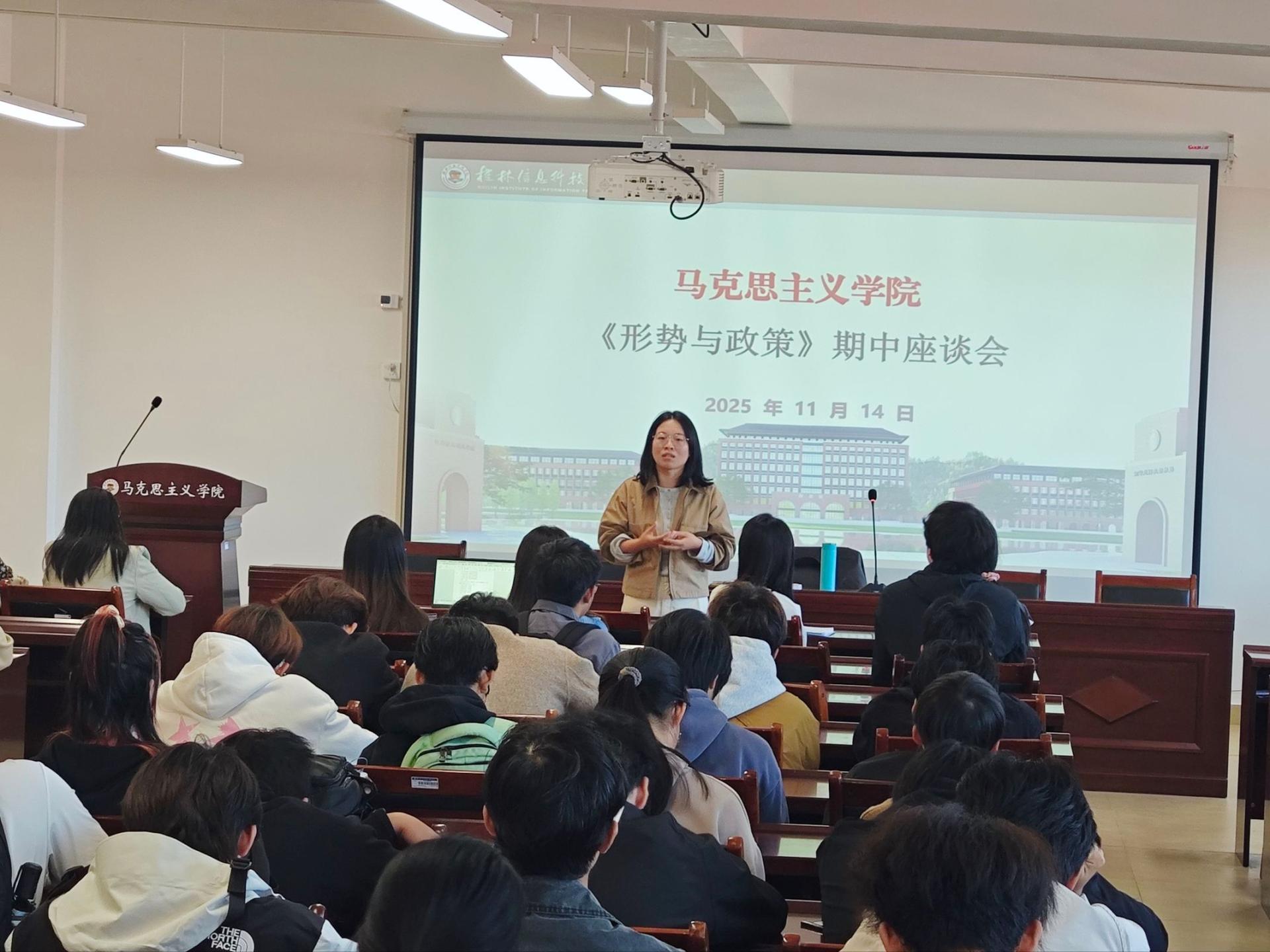 为深入了解《中华民族共同体概论》和《形势与政策》课程的教学情况,及时解答学生学习困惑,11月14日下午,形势与政策教研室在G605会议室召开期中师生座谈会。会议由教研室主任王贻正副教授主持,全体教师及各班级学生代表参加。