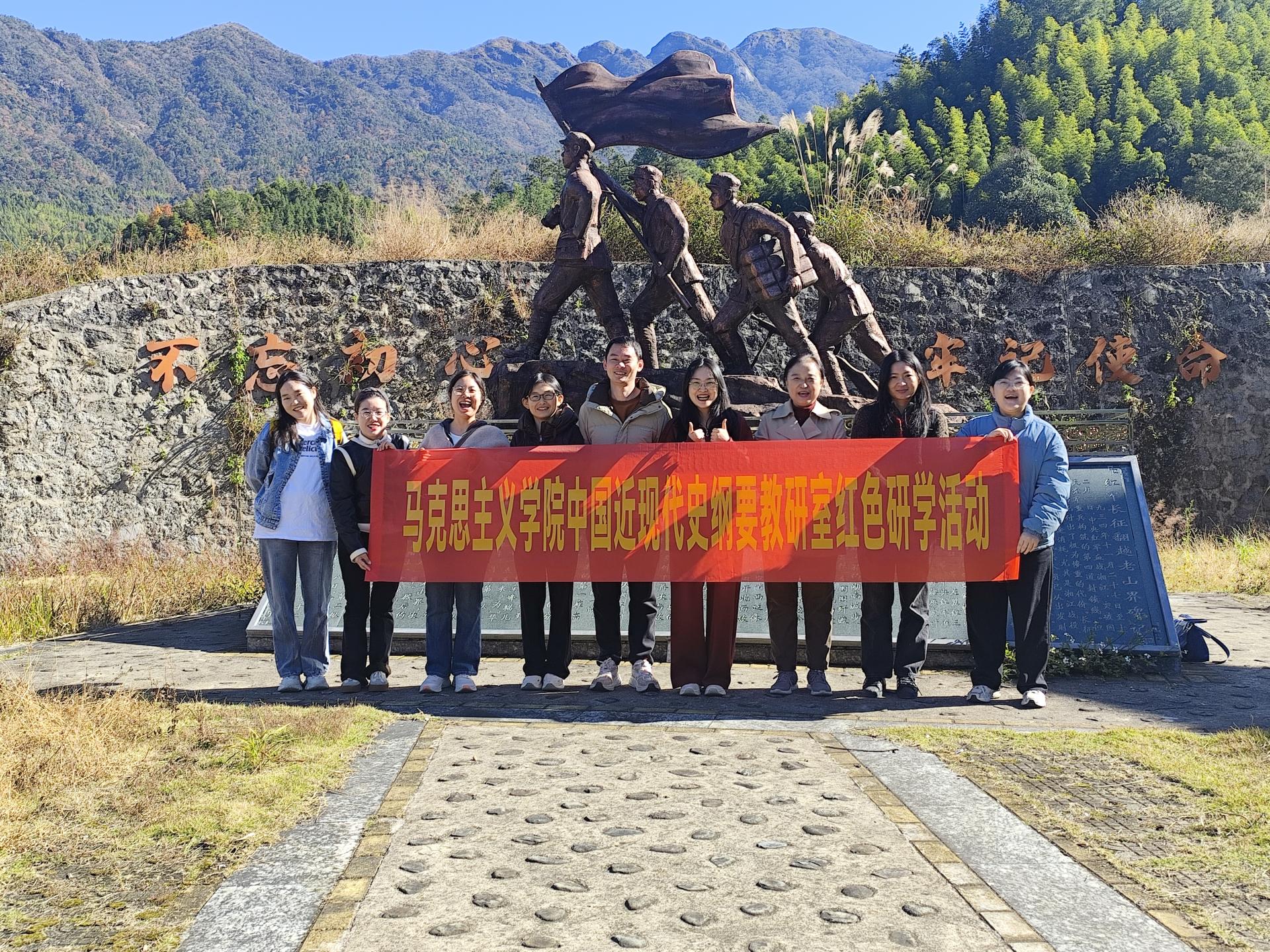 11 月 29 日,中国近现代史纲要教研室组织骨干教师赴桂林市资源县开展 “红色基因融入思政课程 —— 桂林市资源县长征文化遗产的教学转化路径研究” 专题调研活动,让红色遗址成为纲要课的“活教材”。