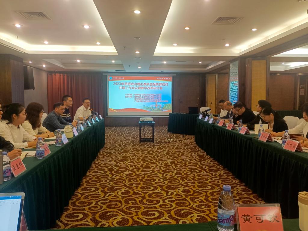 根据自治区党委教育工委、自治区教育厅《广西高校“思想政治理论课多层级集群结对共建大行动”实施方案》工作安排,为加强集群结对共建各院校沟通交流,相互学习,10月30日上午,由桂林电子科技大学马克思主义学院牵头组织开展思想政治理论课多层级集群结对共建院校系列交流活动,活动在桂林百悦酒店二楼两广馆举行。pp电子马克思主义学院、桂林航天工业学院马克思主义学院、广西水利电力职业技术学院马克思主义学院领导、教研室主任和骨干教师共三十余人参加此次研讨会。
