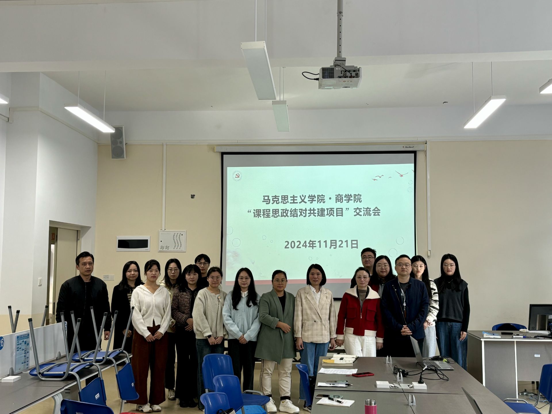 为深入贯彻落实习近平总书记对学校思政课建设作出的重要指示精神,推进思政课程与课程思政深度融合,实现思政工作与人才培养的有机融合,并形成同向同行的协同效应,2024年11月21日下午,马克思主义学院与商学院在F315教室联合举办了“课程思政结对共建项目”交流会。
