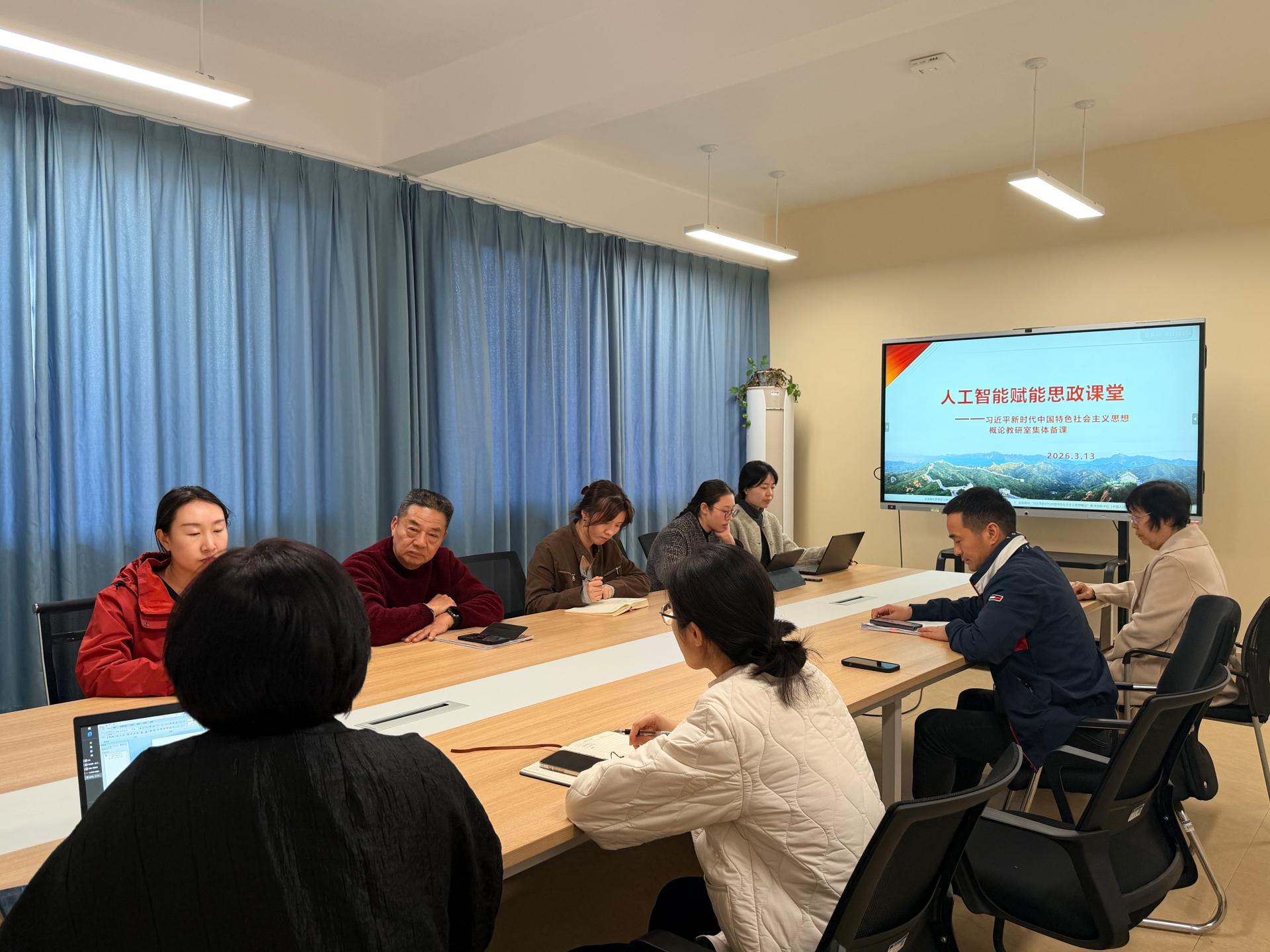 为深入推进教育数字化转型,不断提升新时代思政课教学的针对性、亲和力与实效性,3月13日,《习近平新时代中国特色社会主义思想概论》教研室聚焦“人工智能赋能思政课教学改革”主题开展集体备课会,积极探索智能技术与思政教育深度融合的创新路径。