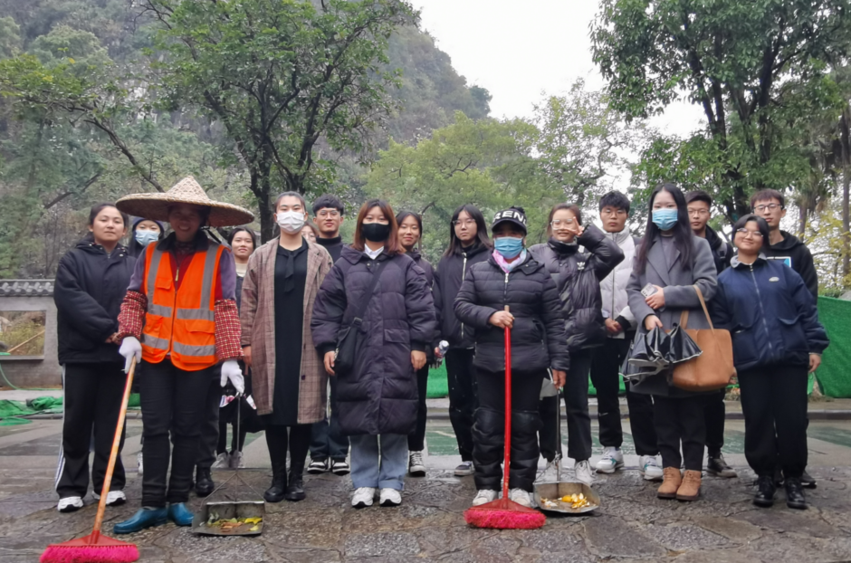 为强化学生干部的奉献意识和服务意识,12月13日,外贸与外语系分团委学生会在桂林市七星景区开展了“服务创城,美丽桂林”志愿服务活动,活动由2020级辅导员杨锦超带头,分团委学生会干部参与。在清洁阿姨的指导下,学生干部分组清扫道路,在3小时内,累计17人次参与,清扫7条公园主干道,15条支道。通过实际行动,充分发挥了学生干部吃苦耐劳精神和带头模范作用,赢得了七星景区清洁阿姨们的一致好评。学生干部们表示,作为...