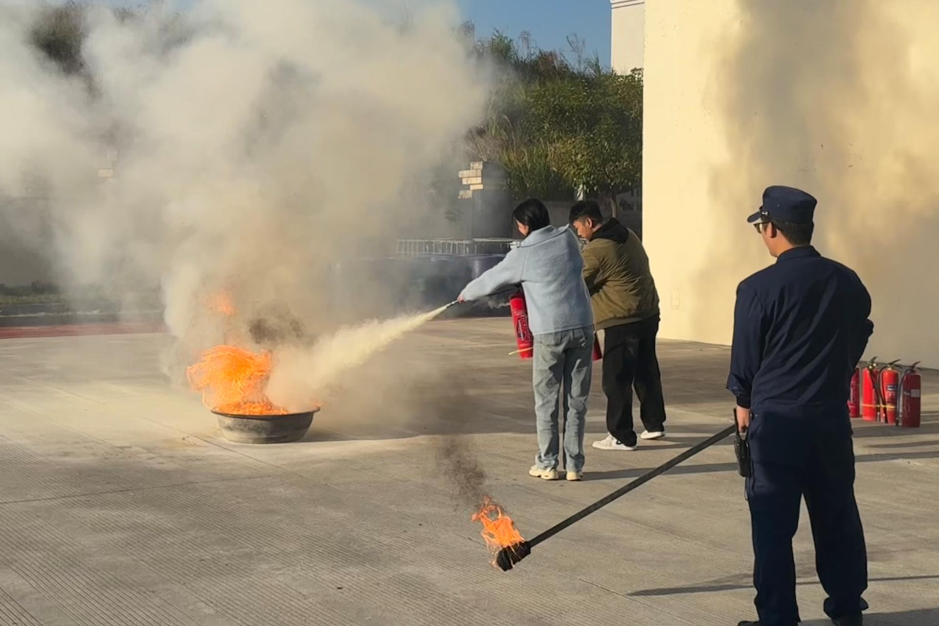 在技能实践环节,陈敬杰同志系统地讲解了火灾预防常识、火场逃生自救等要点,并现场演示了消防水枪、灭火器的正确使用流程。在专业指导下,教师们积极参与灭火实操演练。从理论学习到亲身体验,教师们纷纷表示,这堂“沉浸式”安全教育课有效填补了自身消防知识盲区,对今后在学院开展师生安全宣传教育、排查实验室及工作室安全隐患具有重要指导意义。
