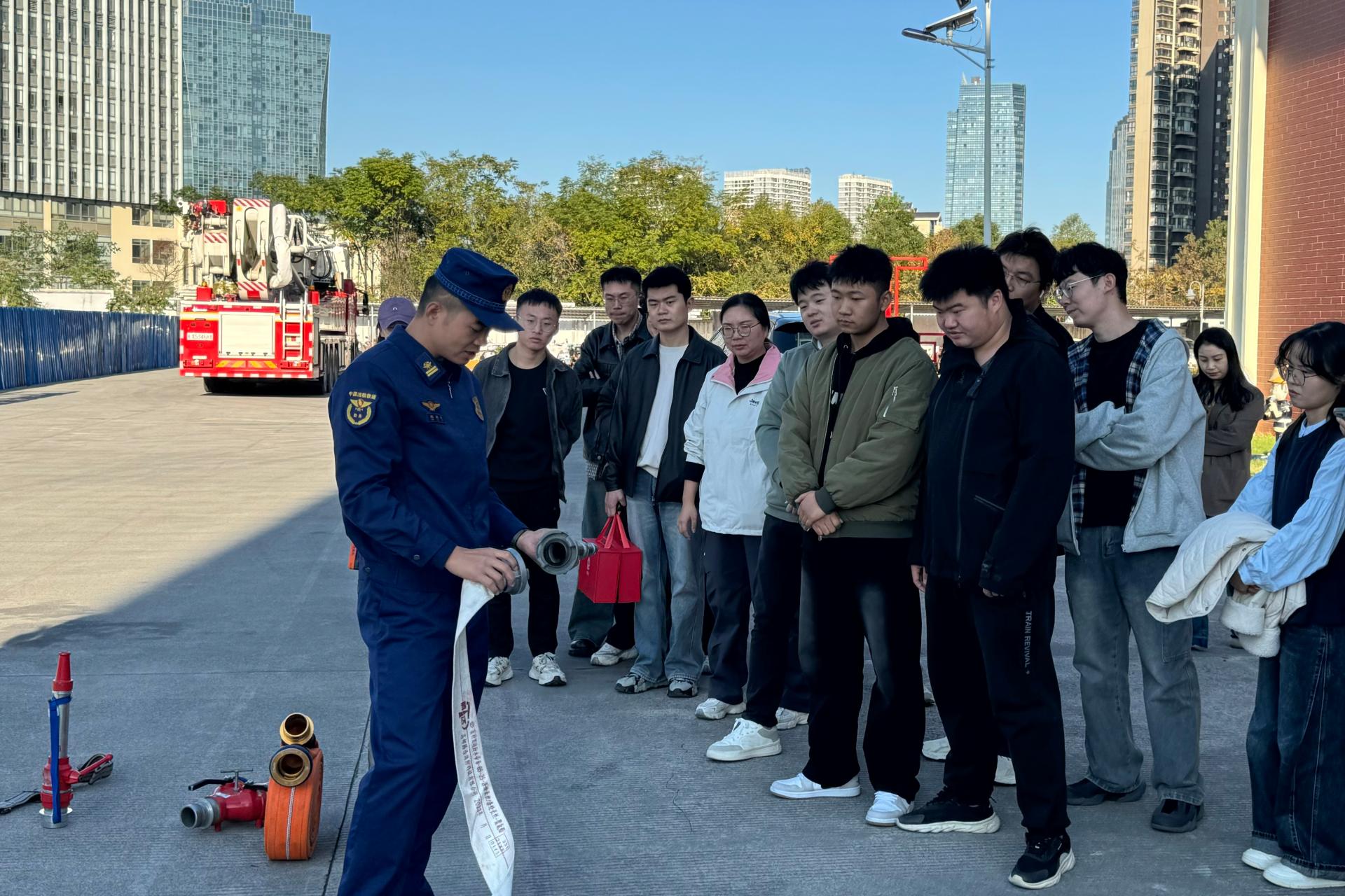 活动伊始,桂林市临桂区榕山消防救援站代理站长助理陈敬杰同志带领学院教师深入消防救援核心区域,对消防车辆装备、常用救援器材的功能特性及应用场景进行了详细讲解。教师们不仅对现代消防科技的力量有了深刻的认识,更通过亲手操作部分装备,深刻体会到了消防指战员日常训练的艰辛与守护平安的重大责任。