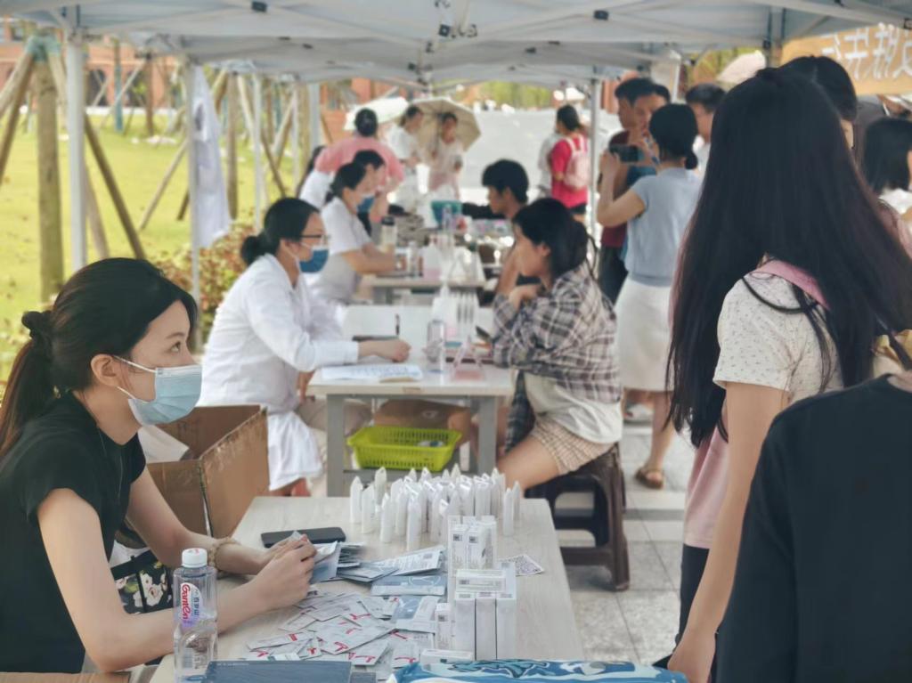 活动现场,医护人员耐心、认真的解答了每位咨询者的问题,现场为学生们普及科学护肤的基本方法,包括清洁、保湿和防晒的重要性,指导学生们如何根据自己的皮肤类型选择合适的护肤品,义诊现场还准备了护肤宣传手册。针对大学生高发的痤疮问题,医护人员提供了专业的防护和治疗建议,同时也为痤疮严重的咨询者提供了免费现场水杨酸治疗,并为学生们发放了精美的医用护肤品。本次活动共为200多位老师和同学提供了咨询服务,活动得到了老师同学们的一致好评,并对医护人员表示感谢。