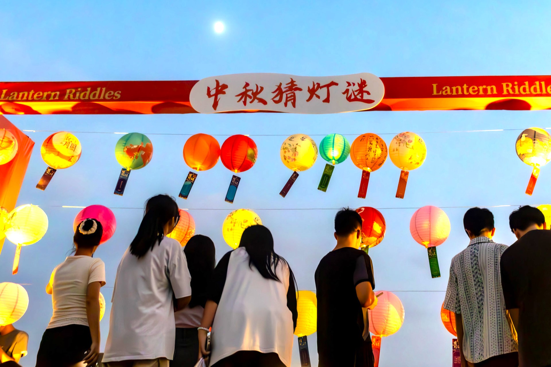 桥上灯谜轻悬,欢声笑语逐水流;月下红酒轻酌,壮志豪情涌心头;