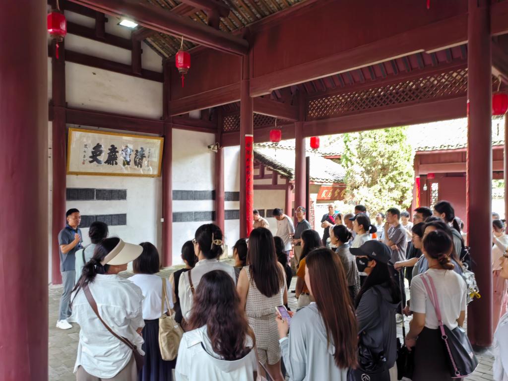 在陈宏谋故居的陈氏宗祠里,教工党支部书记吴敏波围绕陈宏谋一心为民和廉洁奉公的精神,给支部全体党员上了一堂廉洁纪律的情景式党课。陈宏谋作为康乾时期清官廉吏的代表,被誉为“岭南儒宗”,他一生追求立德立言,秉持修身、治家、为官、处世之道,始终保有以“小我”存在,以“大我”为依归的家国情怀。这种崇高的品德和精神,对我们党员具有深远的启示意义。
