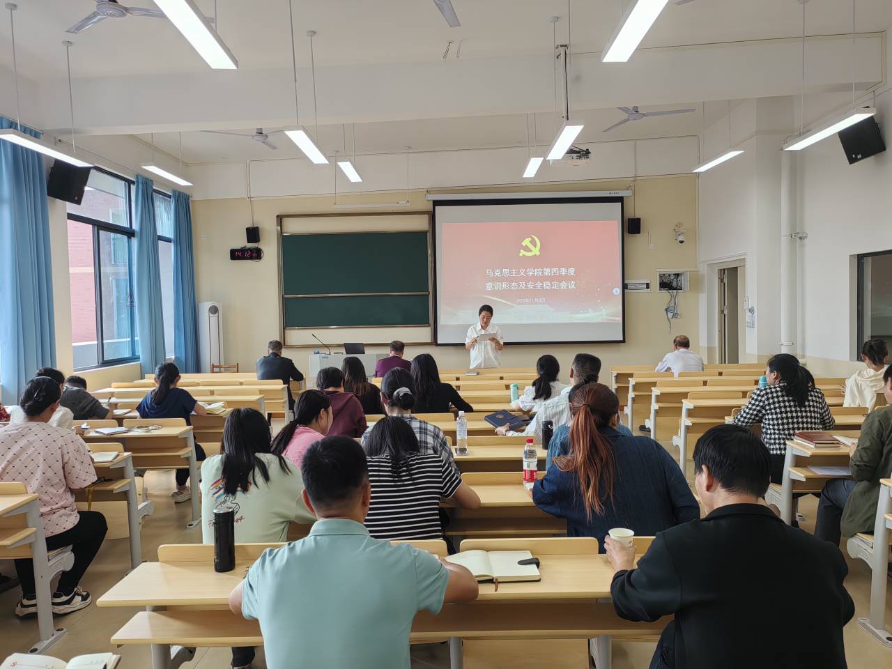 11月3日下午,马克思主义学院党支部在明志楼514教室组织召开2023年第四季度意识形态和安全稳定形势分析研判会。会议由党支部副书记剌啸媛主持,全体马克思主义学院教师参加会议。