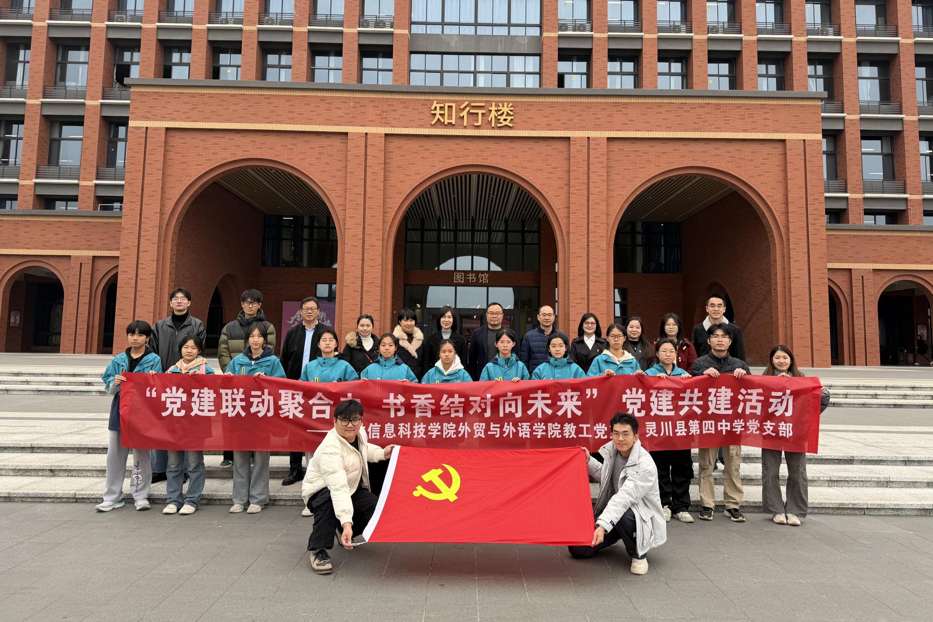 为深入学习贯彻习近平新时代中国特色社会主义思想和党的二十大精神,落实新时代党的建设总要求,搭建校地党建共建桥梁,12月5日上午,pp电子模拟器网站外贸与外语学院第一、二教工党支部联合灵川县第四中学党支部,成功举办“党建联动聚合力,书香结对向未来”支部共建参观研学暨图书捐赠仪式活动。灵川四中党支部书记、校长秦利明及师生代表,与pp电子模拟器网站外贸与外语学院党委书记、副院长廖星男,副院长陆晓,第一、第二教工党支部的党员教师代表及学生党员志愿者共同参与活动。