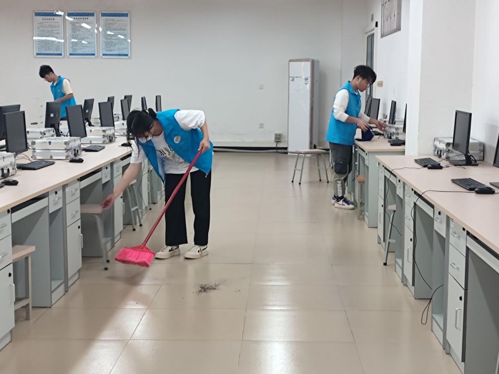 11月3日中午,电子工程学院分团委学生会组织志愿服务团队在四号教学楼开展“志愿服务你我同行,共创美好学习环境”志愿清扫活动,我院各年级共计80名志愿者参与本次活动。
