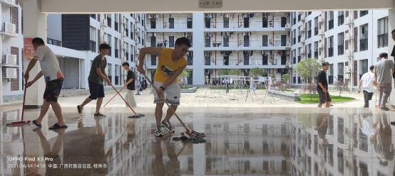 在7号公寓学生宿舍区,党员们和公寓老师进行充分沟通后,分工协作,带上扫把、簸箕、拖把等工具,清扫公寓通道和楼道上的垃圾,并把地面拖扫干净。活动中,党员们发扬不怕苦,不怕累的精神,充分发挥了党员模范带头作用,提高为人民服务的意识。