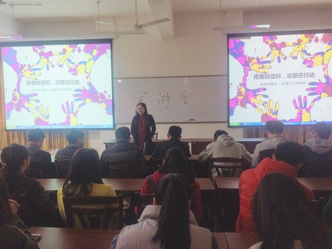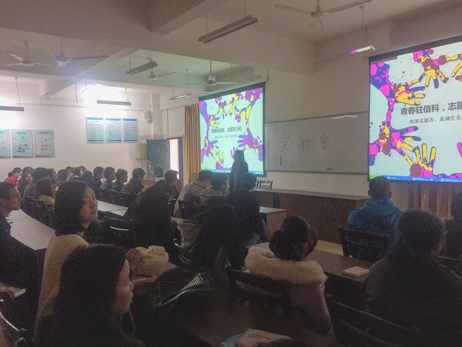 为了响应国家号召,提高大学生基层服务意识。近日,我系针对毕业生召开西部志愿者及征兵动员会, 13级辅导员梁蕊老师参加此次动员会并发表了重要讲话。