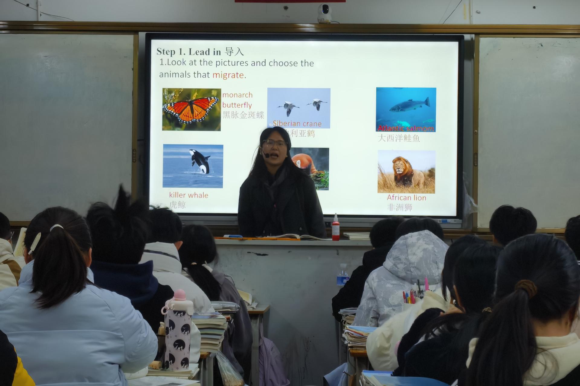 此次公开课中,2名实习教师结合所教班级学生特点与教学目标,打造了针对性强、形式丰富的英语课堂。负责高一年级一班英语教学的邓贤珍,紧扣教材核心内容,立足学生的认知规律与语言基础,以图片导入话题,由浅入深,通过选择、连线、填空、讨论等一系列的任务,流畅地完成了课文略读、细读的过程,让学生在轻松氛围中巩固词汇与句型,有效激发了学生的英语学习兴趣。