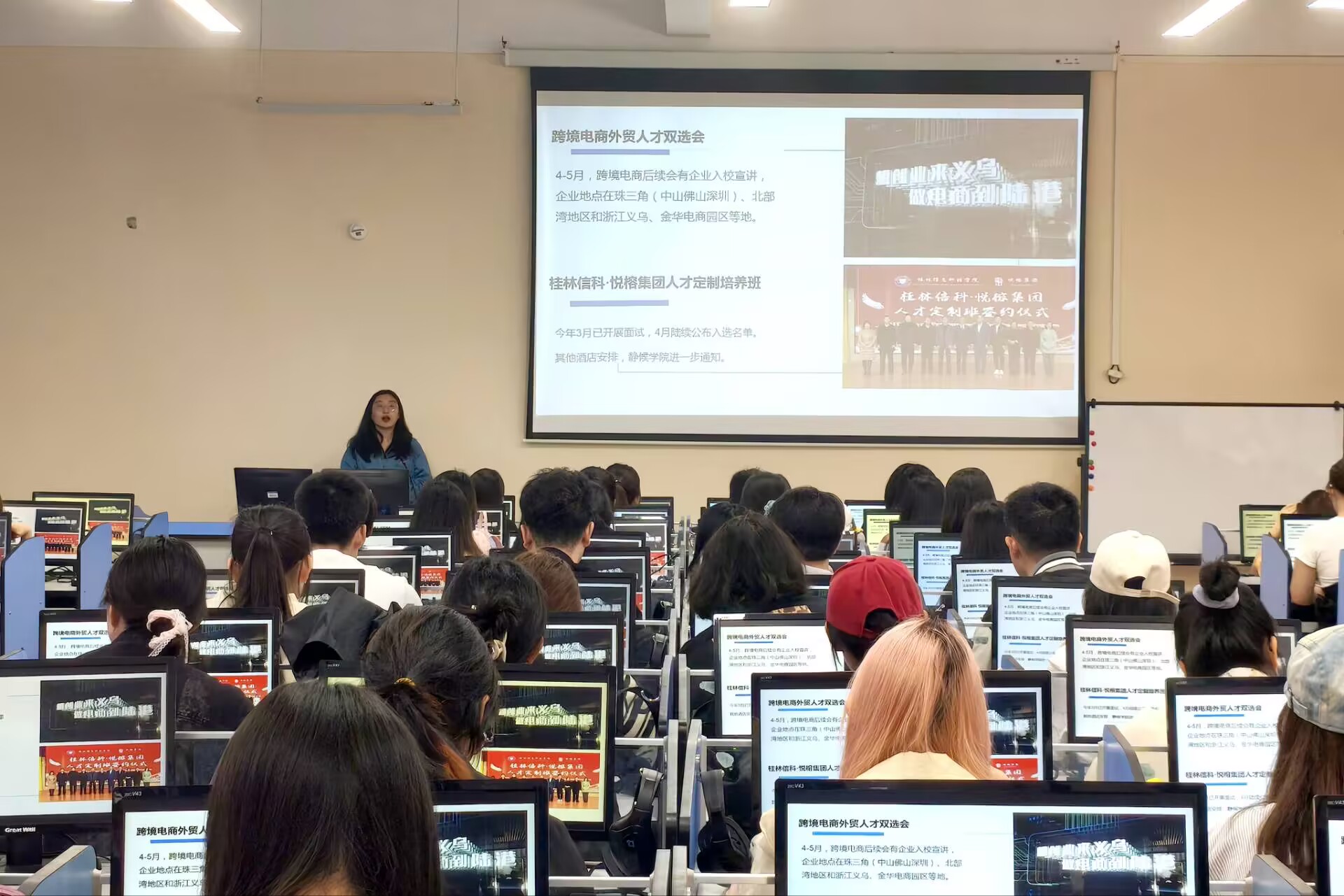 外贸与外语学院已启动2022级学生暑期专业实习与“3+1”联合培养项目的宣讲和报名工作,力争实现专业实习有组织、“3+1”联合培养项目提质保量两大目标。目前,学院已与一批桂林本地、中国(广西)自由贸易试验区崇左片区、珠三角、江浙地区的优质企业联系,加速推进企业进校宣讲工作。