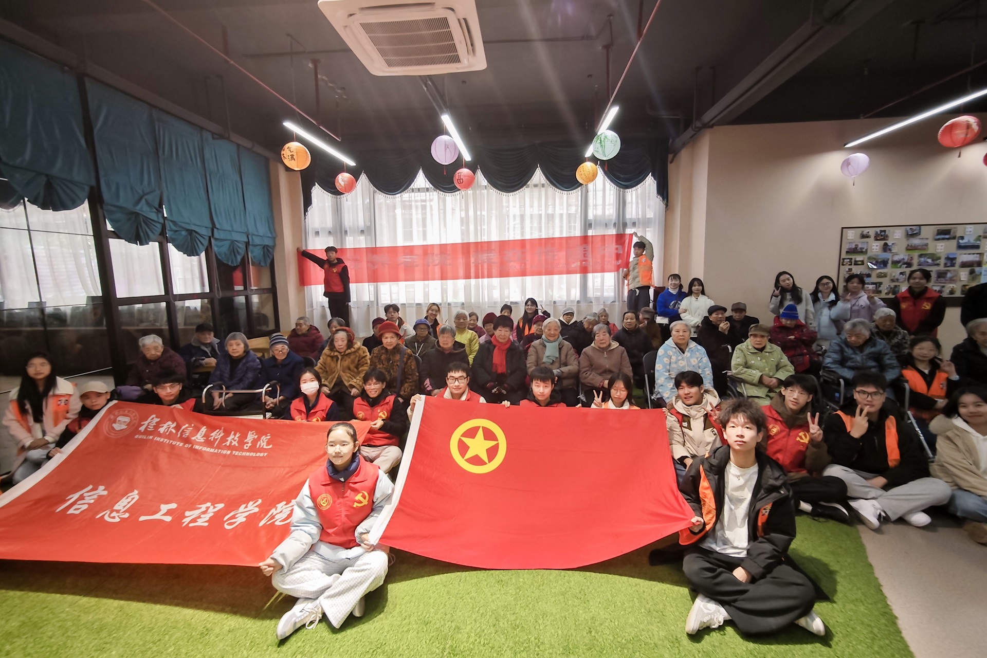 12月17日,信息工程学院在桂林优享家养老服务中心成功举办了一场以“情暖夕阳,爱满养老院”为主题的志愿服务活动。本次活动由信息工程学院学工办主任廖星男、信息工程学院团委副书记薛航,以及我院各年级辅导员代表和“信息青年”志愿者们共同参与。
