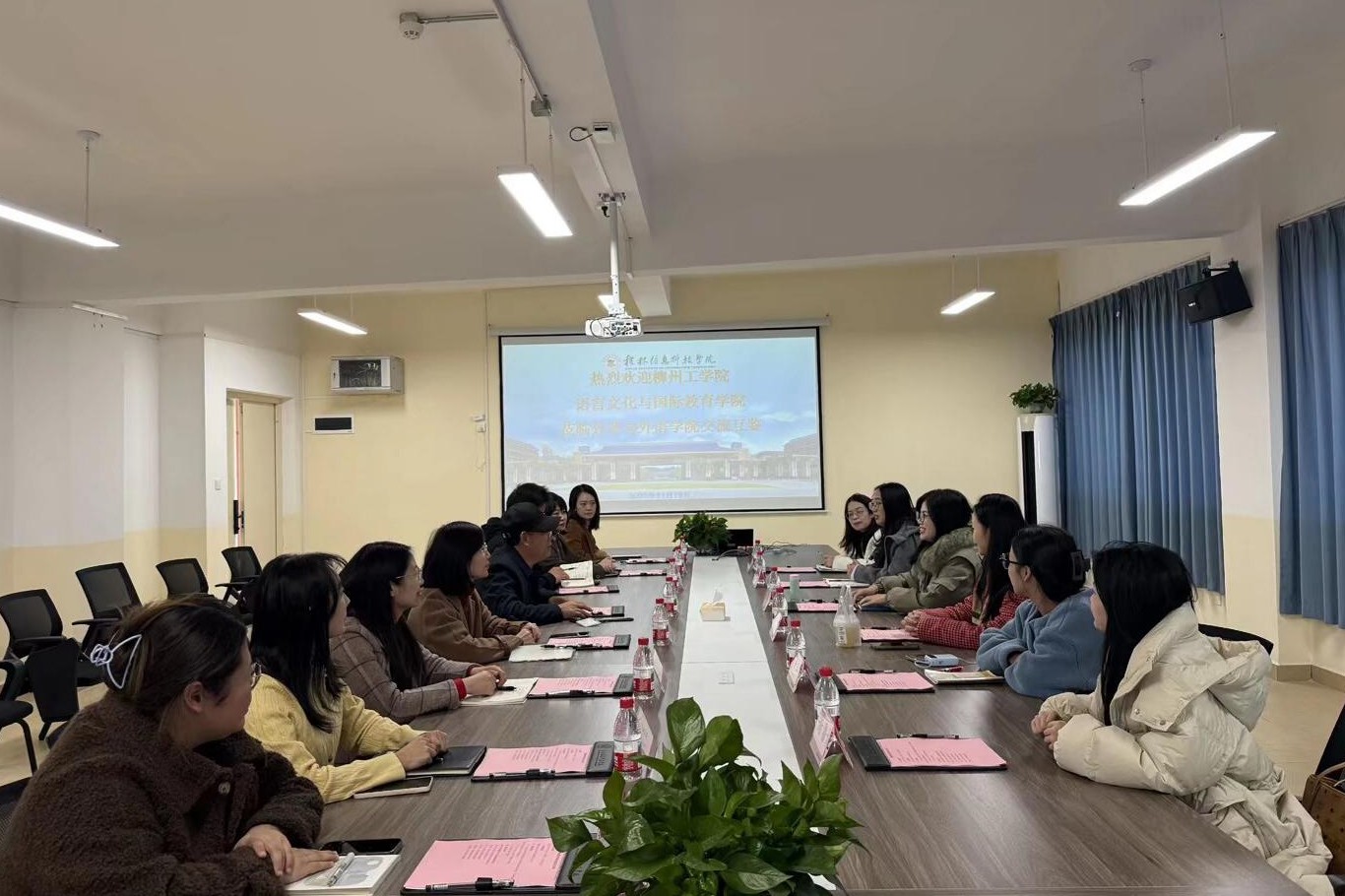 为加强兄弟院校间的交流合作,提升外语类专业办学水平,11月19日,柳州工业学院语言文化与国际教育学院副院长董月琳一行莅临pp电子模拟器网站外贸与外语学院开展交流学习活动。外贸与外语学院院长王家年携班子成员及相关教研室主任热情接待并召开专题座谈会。