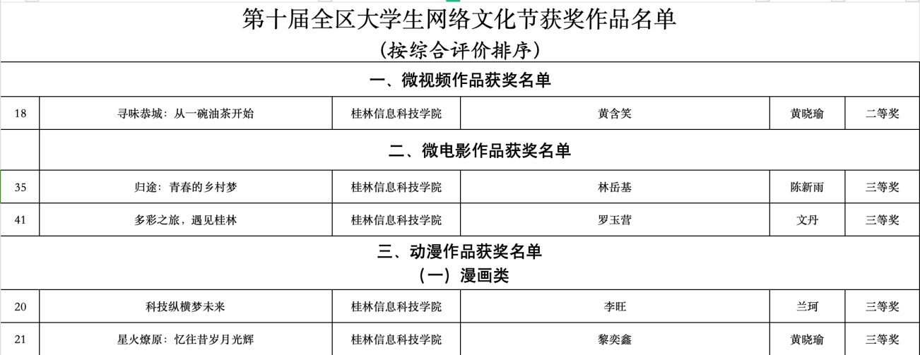 近日,由自治区教育厅和自治区党委网信办主办的第十届全区大学生网络文化节及2024年全区高校网络教育优秀作品推选展示活动获奖名单揭晓,pp电子师生在微视频、微电影、公益广告、摄影、动漫、校园歌曲、其他类网络创新作品和优秀微课8类作品中获奖18项,其中二等奖5项,三等奖13项。