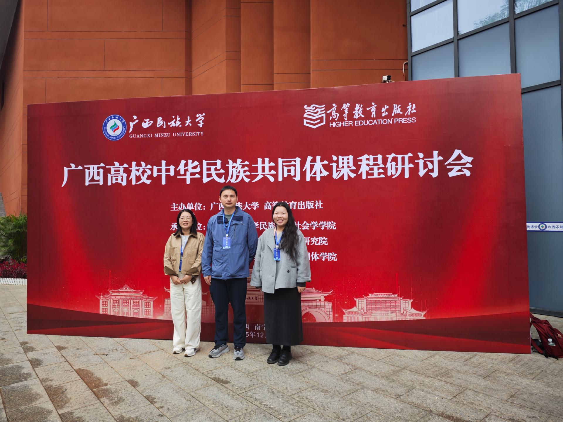 为进一步推动中华民族共同体意识教育深度融入高校思政课程体系,切实提升教学质量和育人成效,12月13日,马克思主义学院副院长赖学良率骨干教师蒋春妹、荣雪辰赴南宁参加广西高校《中华民族共同体概论》课程研讨会。培训代表合影在研讨会上,中央社会主义学院邵磊老师系统阐述了《中华民族共同体概论》教材的编写思路,强调要通过“史论结合、论从史出”的方法,讲透中华民族发展的历史、理论和实践逻辑。西南民族大学龚梦川老...