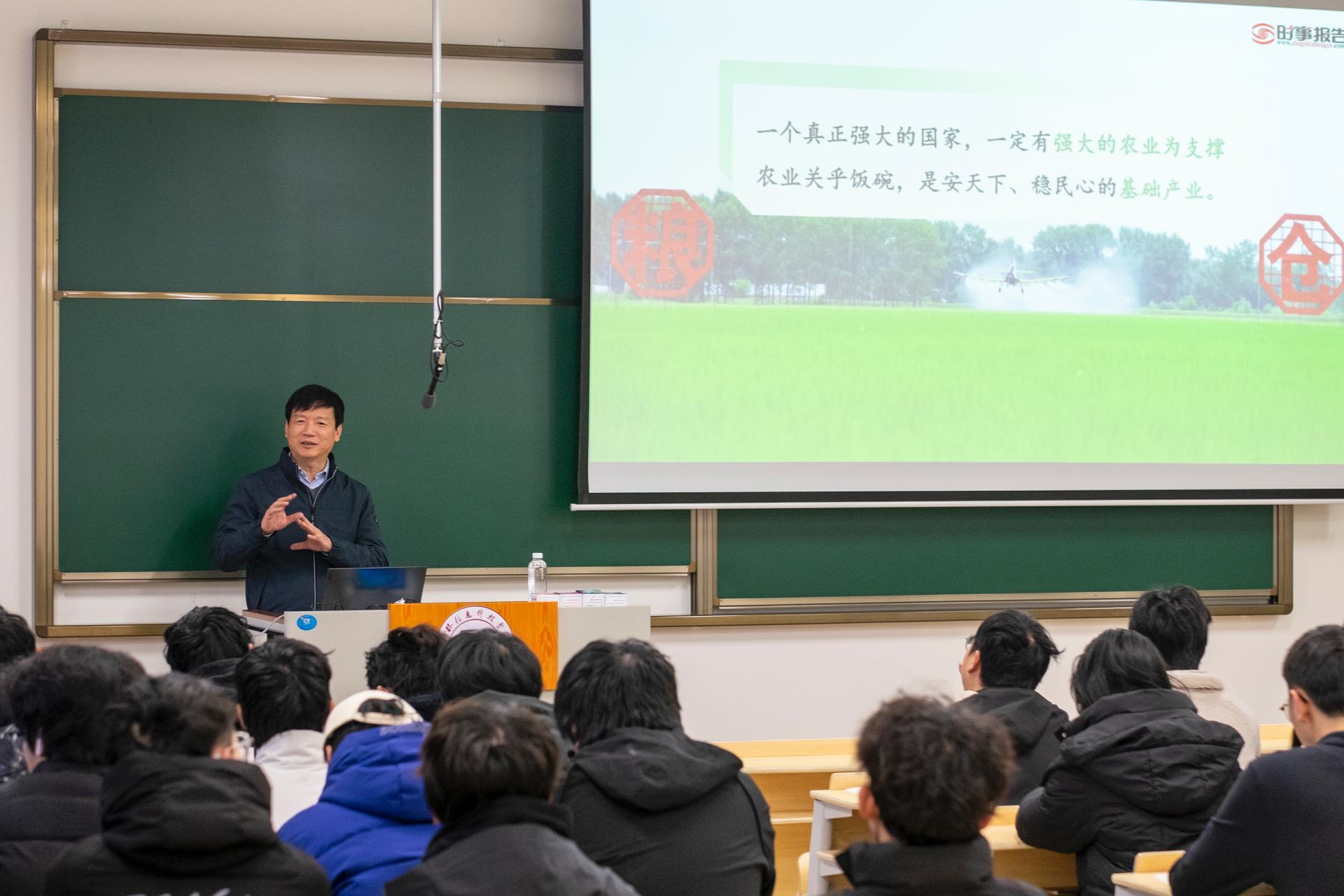 1月4日上午,校长解庆林为信息工程学院软件工程专业大一学生讲授《形势与政策》课。课上,解校长以“阔步迈向农业强国”为主题,结合2025年中央农村工作会议精神,从“为何要加快建设农业强国、建设什么样的农业强国、怎样加快建设农业强国”三个方面进行深入讲解。解校长强调,作为软件工程专业的学生,要主动思考如何将信息技术与现代农业深度融合。他鼓励同学们将个人发展融入国家战略,充分发挥专业优势,在智慧农业、数字...