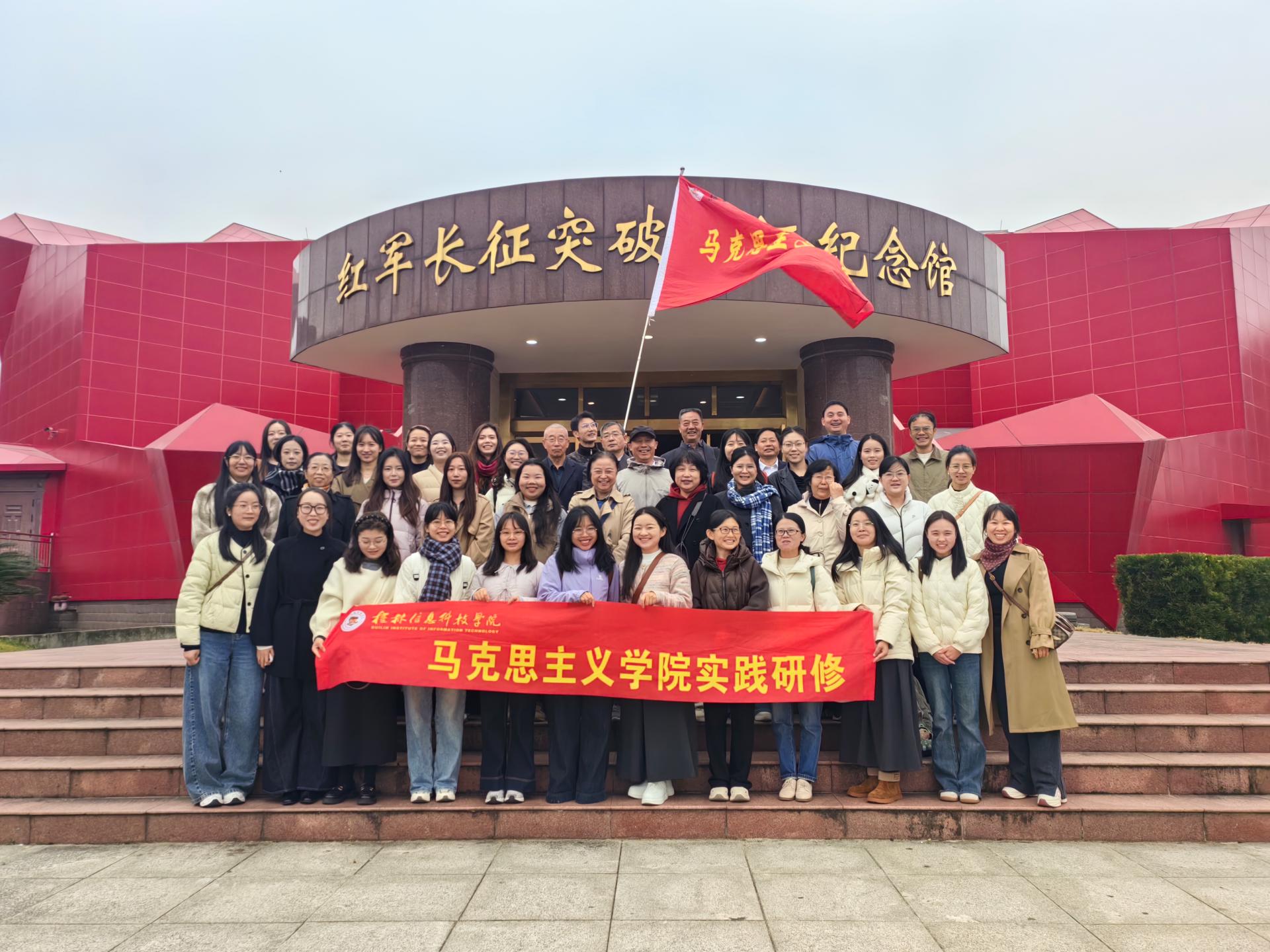为深化“大思政课”建设,推动红色资源与中华优秀传统文化深度融入思政教学实践,12月5日,马克思主义学院组织教师赴桂林市兴安县开展实践研修活动。研修合影在红军长征突破湘江战役纪念馆,教师们通过“雕塑群像”、陈树湘师长“断肠明志”的壮烈事迹,以及智能影像技术还原的历史场景,深刻感悟到“勇于胜利、勇于突破、勇于牺牲”的湘江战役精神。随后,在灵渠博物馆和灵渠水利工程现场,教师们折服于“弯道代闸”“铧嘴分...