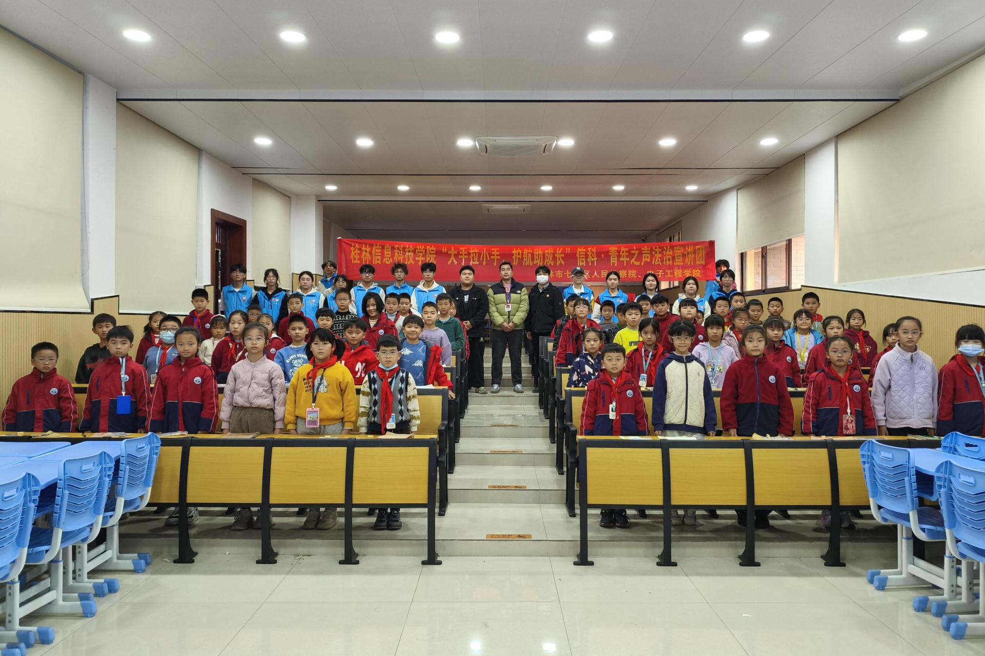 为加强未成年人法治教育,筑牢校园安全防线,12月9日下午,学院团委副书记曾桐宇带领“信科·青年之声”法治宣讲团前往桂林市临桂区新城小学,开展题为“以法治为翼,共护‘未’来”的法治宣讲活动。活动围绕“防范毒品、抵制欺凌、预防性侵”三大主题,为小学生们带来了一堂生动而深刻的法治启蒙课。宣讲过程中,宣讲团成员结合案例与教具,以互动形式讲解法律知识。孩子们认真聆听毒品危害,积极参与抵制欺凌的情景模拟,并在...