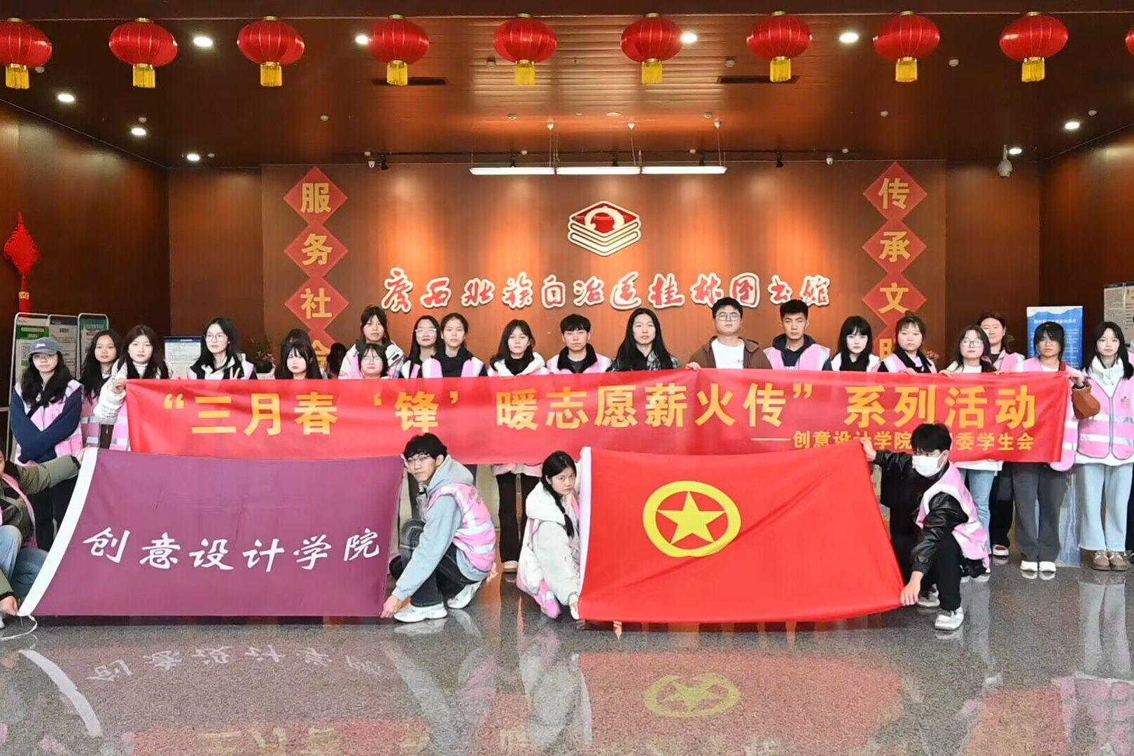 为进一步弘扬新时代雷锋精神,践行社会主义核心价值观,培养学生“奉献、友爱、互助、进步”的志愿理念。3月20日,创意设计学院前往桂林图书馆开展“笔墨润书香,志愿聚微光”志愿服务活动。活动中,图书馆的负责老师将志愿者分为两组,分别前往图书馆一楼入口和二楼进行入馆读者的引导以及图书整理工作,之后由各层图书管理员老师为志愿者们介绍本次整理图书的主要工作内容及注意事项和具体操作流程。志愿者们明确分工、各司...