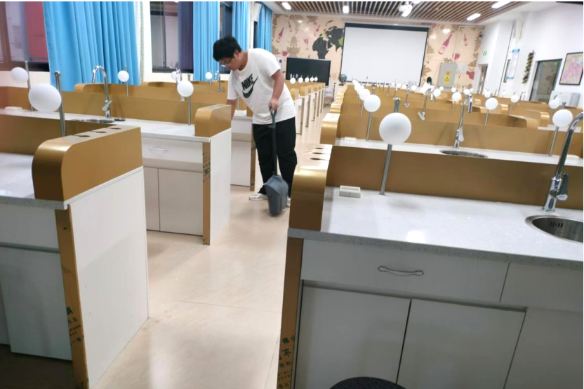 为引导我院入党积极分子体验学习共产党员的服务群众意识和集体奉献精神。11月4日,外贸与外语学院党总支组织40名入党积极分子开展实践教育志愿服务活动。活动中,外贸与外语学院组织员钟少丽老师将本次志愿服务区域的13间实验室分配给了40名入党积极分子并分发了清洁工具。在负责老师的安排下,有条不紊地对我院实验室进行地面清洁、整理摆放桌面教学设备、排查实验室消防设施等工作,志愿者们高效率、高质量地完成了此次清扫活...