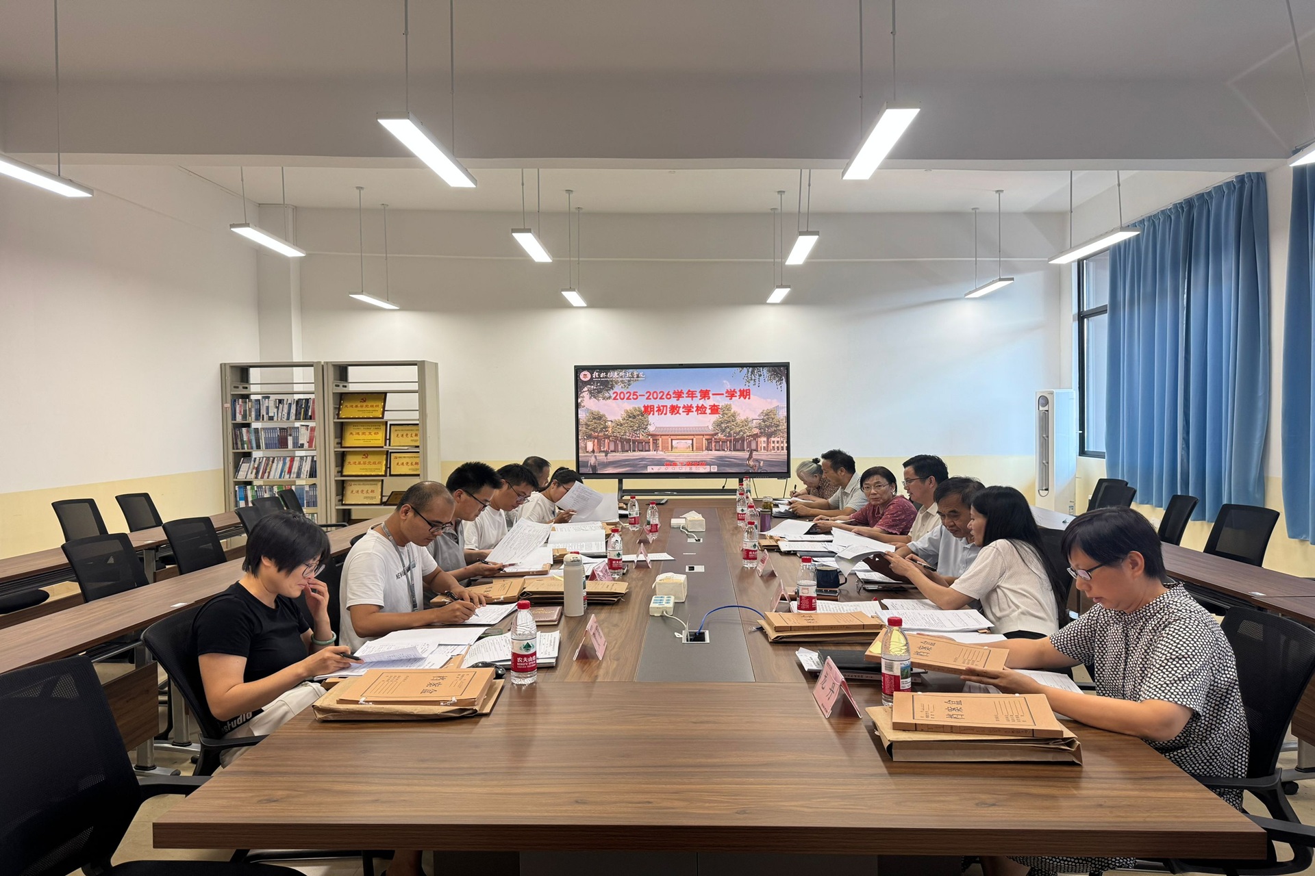 为确保新学期教学工作平稳有序运行,全面掌握教学准备和运行情况,及时发现问题并推动解决,持续提升教学质量,根据学校《校质控〔2025〕20号》通知要求,9月5日,信息工程学院在院长黄建灯、院长助理刘欣和龙丹的带领下,组织开展了2025–2026学年第一学期期初教学检查工作。本次检查采取抽查方式进行,共10位院级督导成员和3位正副院长参加,重点对本学期课程的教学材料、2024–2025学年第二学期的教学档案,以及2024届、2025...