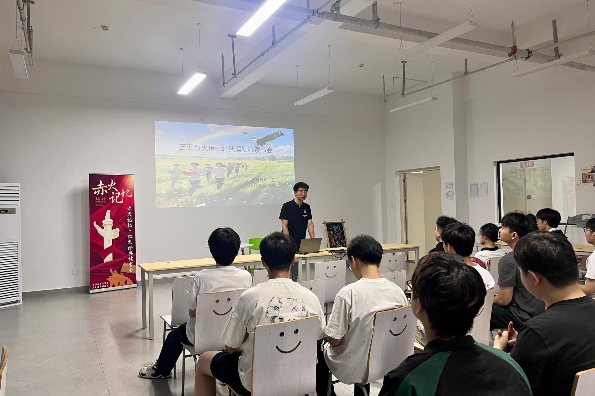 为传承五四精神、激发青年担当,5月23日晚,图书馆“阅动前行”线下读书分享会在知行楼621室顺利举行。协会指导老师、机电工程学院辅导员于凌浩参加了活动。本期读书分享活动以“五四薪火传·经典润初心”为主题。活动伊始,屏幕上五四运动珍贵的老照片与抗疫青年无畏逆行的照片交相辉映,百年前的热血呐喊与新时代的使命担当跨越时空同频共振,共同勾勒出中华民族永不褪色的青春脊梁。活动现场随后,师生共读《少年中国说》。同...